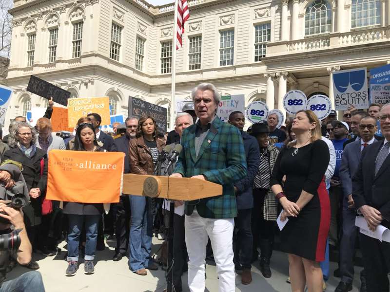 I just got back from a rally at City Hall. It was organized by city council member Jimmy Van Bramer to protest the proposed budget cuts to both publicly funded arts organizations (NEA, NEH and the Corporation for Public Broadcasting) and the library system. Lots of other council members, museum directors, actors, union representatives and many more were on hand. It was a beautiful spring day. I spoke very briefly, making the economic and social argument—that arts funding benefits the economy and creates jobs way in excess of the amount invested. It has the effect of lowering crime, raising property values and lowering child abuse! Really!